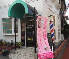お顔そりの旗を目印にどうぞ。駐車スペースがありますのでお車でもおこしいただけます。